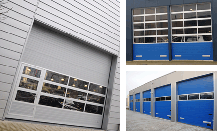 De glassectiedeuren kunnen worden voorzien van vensters over de gehele breedte van de deur en klikramen. Verder is een cylinder slot mogelijk, bediening door hand kettingtakel of elektrisch aangedreven, ventilatieroosters of loopdeur in het paneel.